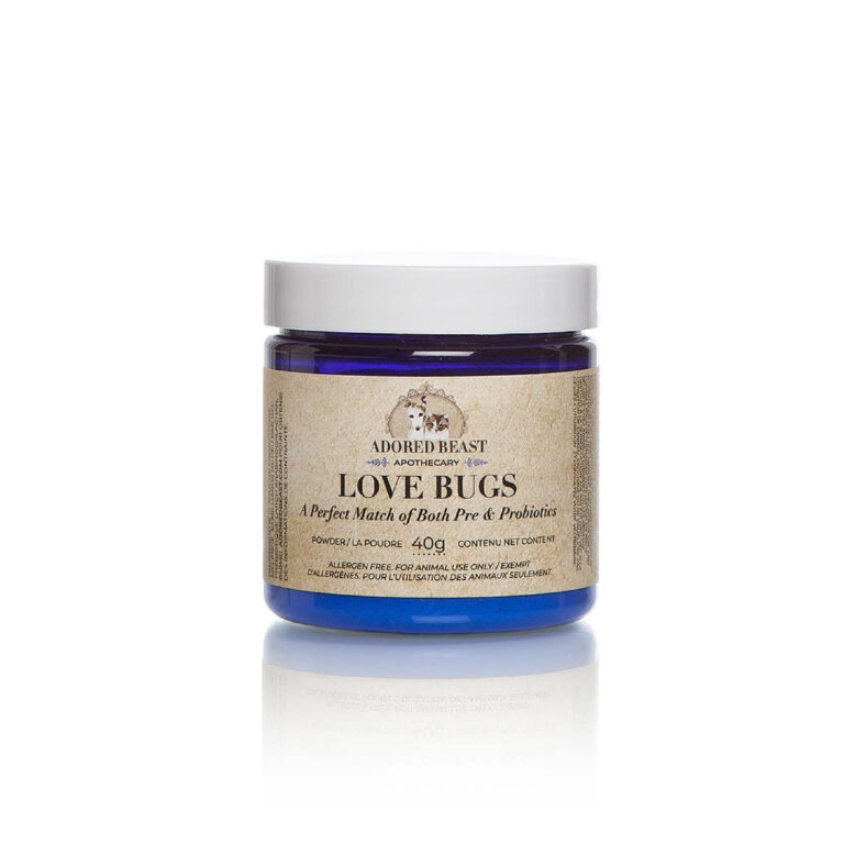 The gut flora constantly changes daily due to many different things including diet, vaccinations, antibiotics, toxins, and even parasites. Adored Beast Apothecary’s Love Bugs can assist the body in addressing issues such as digestive issues, allergies, yeast infections, and irritable bowel syndrome.